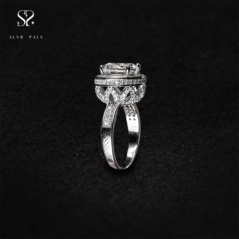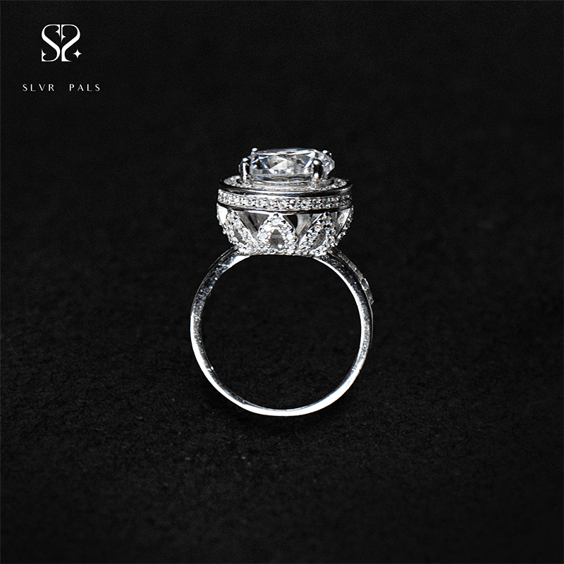 Crown of Elegance Halo Silver Ring Design in 925 Sterling